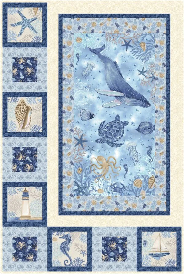 Collection Description: Discover the Cobalt Seas by Henry Glass Fabrics! This stunning collection showcases the beauty of the ocean with deep blue hues, intricate seashells, and delicate coral patterns.