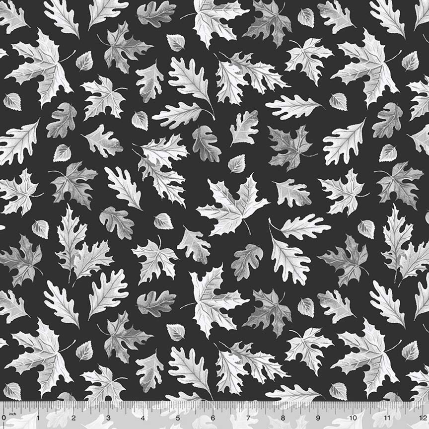 Fletcher Flannel Black Falling Leaves Yardage