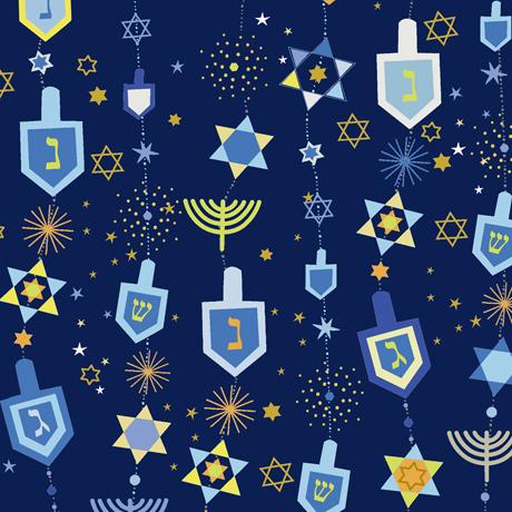 Celebrate the Festival of Lights with this sophisticated selection of prints from ©Turnowsky. Add to the joy with Menorahs, the Star of David, and mixed Hanukkah motifs colored in the varying traditional blues for this special holiday. Perfect for tabletop décor, quilts, and accessories. Name/Sku: Hanukkah Greetings Motifs Navy QT Fabrics / 28358-N Material: 100% Cotton Size: 43"/44"