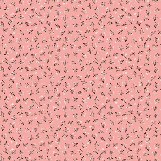 "Prairie is Lori Holt's love letter to the pastoral life of her roots. This Riley Blake collection recalls classic quilts with traditional aesthetics, so these traditional prints will be just perfect for making gorgeous patchwork creations that look positively homespun, featuring florals, old covered wagons, big bonnets, gingham, embroidered text, shirtings, stripes and other designs." These will go great with any of your favorite Lori Holt collections. This print features scattered sprigs of flowers on a coral pink background.