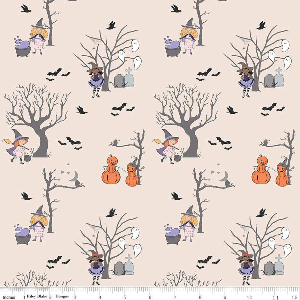 Collection description: The fabric collection is a Halloween fabric line I designed after imagining a school for witches in NYC. The line features a variety of spooky prints, including a building facade, ghosts, wallpaper damask, and a spooky night sky!