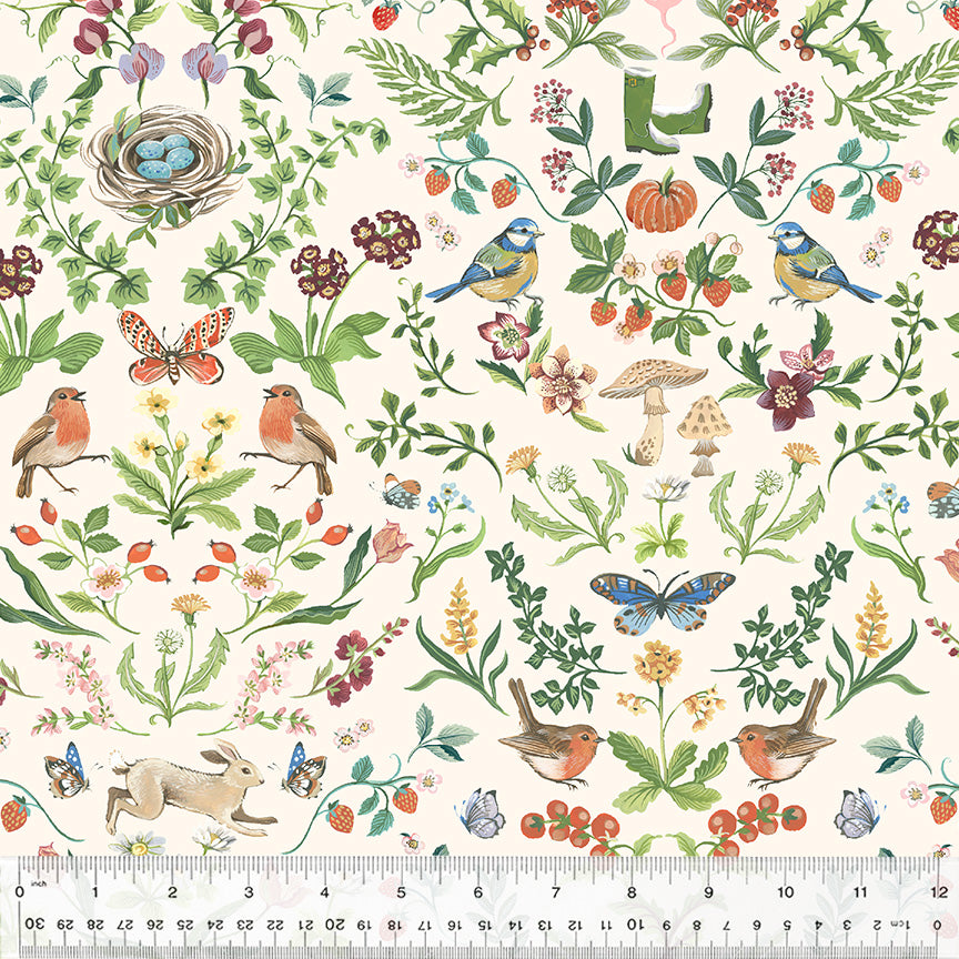 Collection Description: Spring has sprung and the garden is humming with life! Robins chirp happily, flowers are starting to bloom and fruits and vegetables are growing in the greenhouse. Robin, new from Clare Therese Gray, is delicately painted in her signature illustrated style. In a lovely palette of blush, sage, sky blue, ivory and denim it is sure to create fresh and whimsical projects.