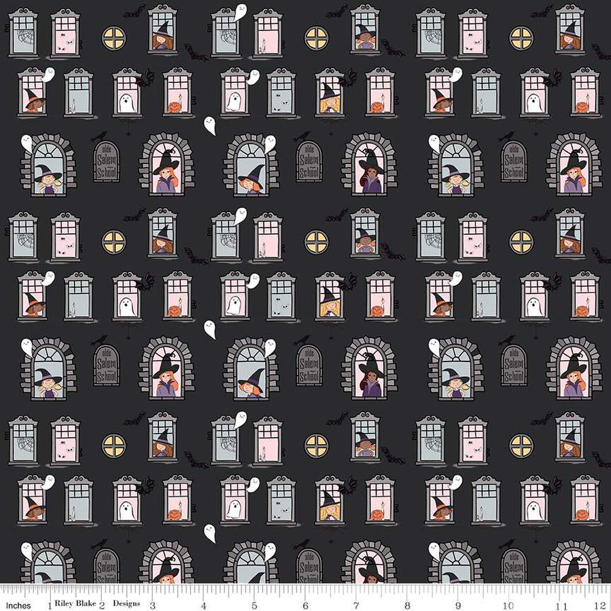 Collection description: The fabric collection is a Halloween fabric line I designed after imagining a school for witches in NYC. The line features a variety of spooky prints, including a building facade, ghosts, wallpaper damask, and a spooky night sky!