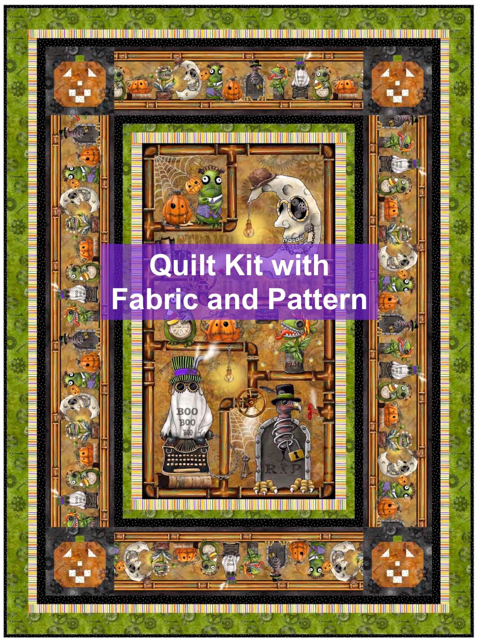 Description: Welcome back to Desiree’s Designs whimsical steampunk world! Imaginative characters adorn a large feature panel and border stripe that mix and match seamlessly with allover prints. Featuring hauntingly curious characters, this quilt is sure to be a spooky showstopper. Create a one-of-a-kind project with this spooktacularly creative collection!