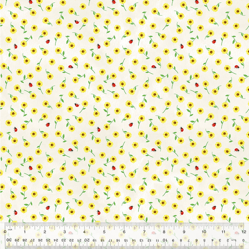 Print Description: This print features small sunflowers and ladybugs on a white background.
