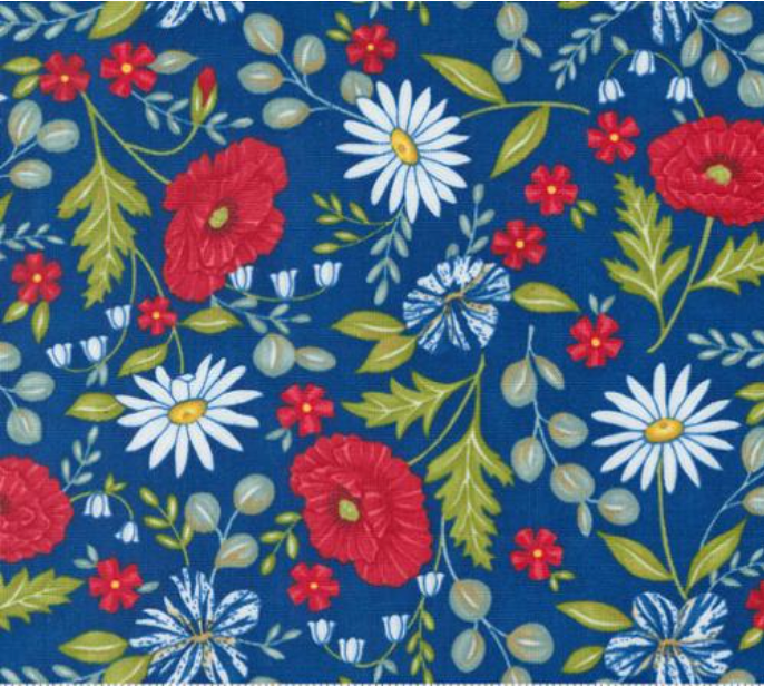 Collection Description: Red, White and Bloom by Moda Fabrics is a festive celebration of Americana! This collection features cheerful florals, patriotic stars, and charming motifs in vibrant reds, crisp whites, and bold blues. Perfect for creating quilts, home decor, and accessories that radiate the spirit of summer celebrations and Fourth of July festivities.