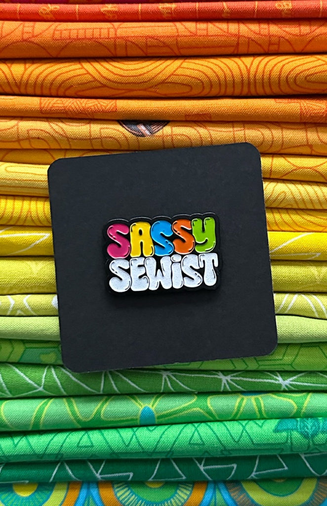Add some personality to your collection with The Sassy Sewist enamel pin! Featuring bold, colorful bubble lettering and a touch of white glitter for extra sparkle, this pin is both fun and eye-catching. Crafted from durable zinc alloy, it comes with two secure rubber clutches on the back to keep it in place.
