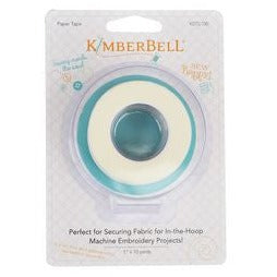 Description: Kimberbell Paper Tape is designed for use with your In-The-Hoop embroidery projects. Use to temporarily secure fabrics while piecing your projects together. Easy to tear Holds securely. Will not gum up needle or leave residue - Helps prevent rolling of fabric or tape underneath the hoop not made with natural rubber latex.
