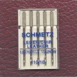 Description: The SCHMETZ Leather sewing machine needle has a left twist cutting point. As the name suggests, use the Leather needle to sew leather, faux leather, paper, and heavy non-woven synthetics. The cutting point easily penetrates leather. Remember once the stitch is created, the thread can be removed, but the stitch hole will remain. Do not use on knit or woven fabrics.