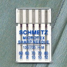 Description: The SCHMETZ Microtex sewing machine needle is generically known as a "sharp" needle. The very slim acute point creates beautiful topstitching on fashion sewing and perfectly straight stitches for piecing and quilting. Use the SCHMETZ Microtex when precision is paramount.