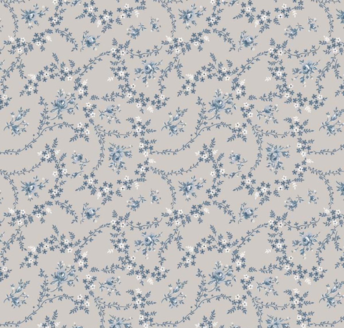 Serenity Blues Vines Taupe Yardage
