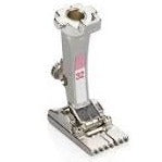 Description: #32 Pintuck Foot with 7 Grooves. For beautiful pintucks Ideal for mini-piping, trimmings and smocking. For Entredeux and chopstick work. With 7 grooves for 7 parallel pintucks. For use with a 2 mm double needle. For fine to medium-weight materials.