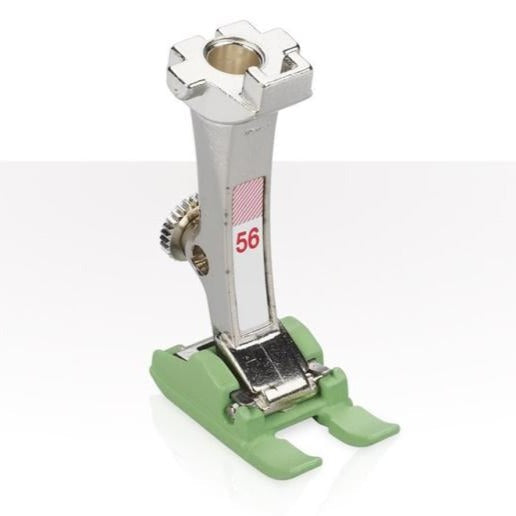 Description: #56 Open Embroidery Foot with Non-Stick Sole. Perfect for sewing decorative stitches. Creation of attractive appliqué designs. Open shape for a clear view of the sewing area. Non-stick coating on the sole ensures it slides smoothly. For plastic, vinyl, leather or similar materials.