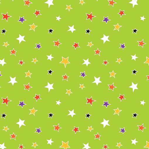 Print Description: Multicolored stars on green