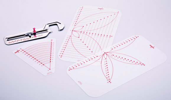 Description: The Circular Attachment is a perfect tool when making unique embellishments on sewing projects, garments and quilts. In the box you will find the Circular Attachment with size guide and pivot pin. Three different templates are included.