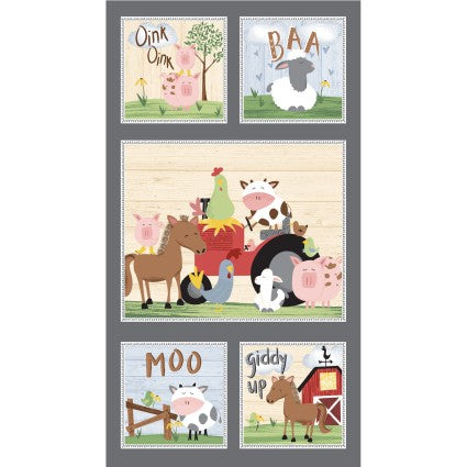 Print Description: This digitally-printed panel features a playful pattern of farm animals and farm appliances