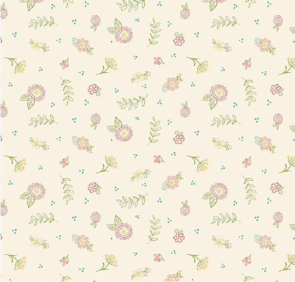 Print Description: This print features outlined flowers and leaves with clusters of dots.