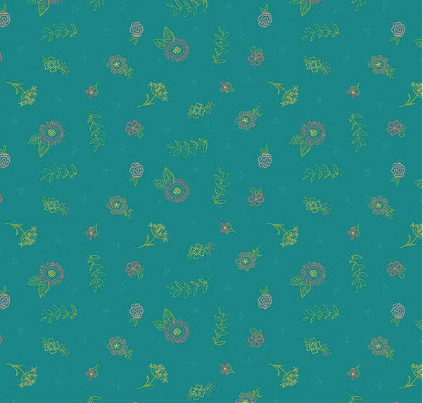 Print Description: This print features outlined flowers and leaves with clusters of dots.