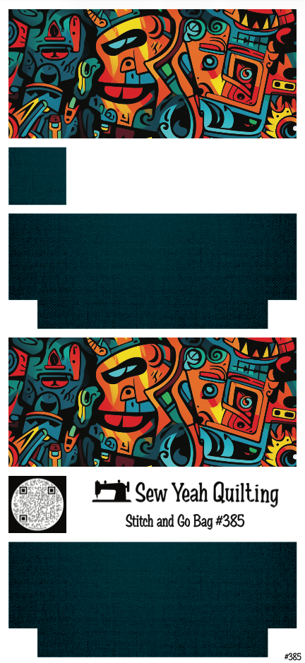 Stitch & Go Bag #385 - Graffiti Abstract Faces Colorful on Teal