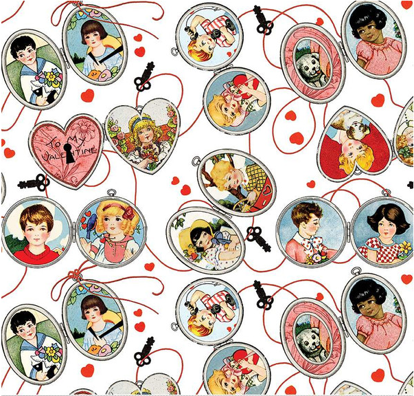 Print Description:  This digitally-printed fabric features vintage lockets, keys, and hearts.