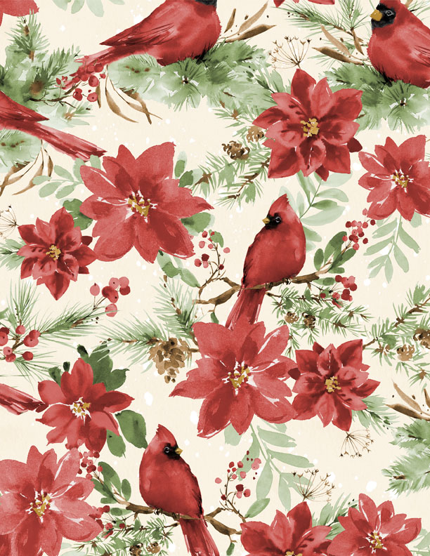 Description: Cardinal Celebration by Wilmington Prints is a winter wonderland filled with bright red cardinals, snowy branches, and classic holiday charm. With pinecones, holly, and elegant touches, it’s perfect for cozy, festive creations!