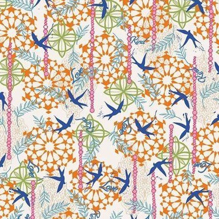 Collection Description: Enchanted. Become enchanted with the latest collection from Valori Wells for Free Spirit Fabrics. Beautiful birds soar across floral backgrounds. Intricate geometrics add depth and complexity to this wonderful collection.
