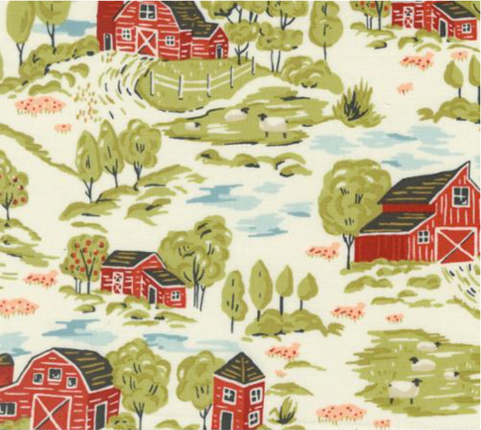 Collection Description: Farmstead by Moda Fabrics captures the cozy charm of rural life! This collection features delightful farm scenes, rustic barns, adorable farm animals, and classic gingham patterns.