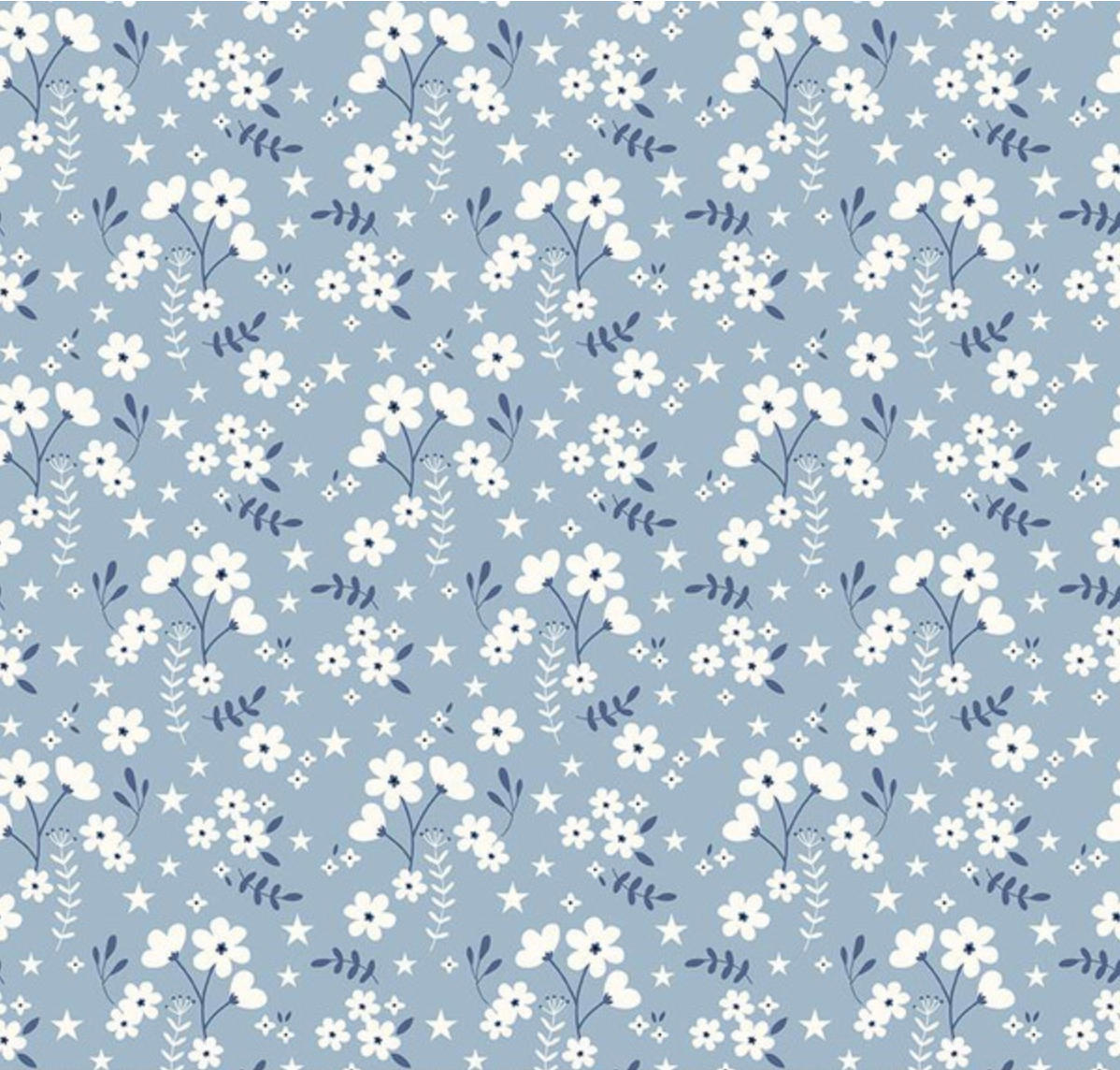 Print Description: This print features scattered flowers, leaves, and stars.