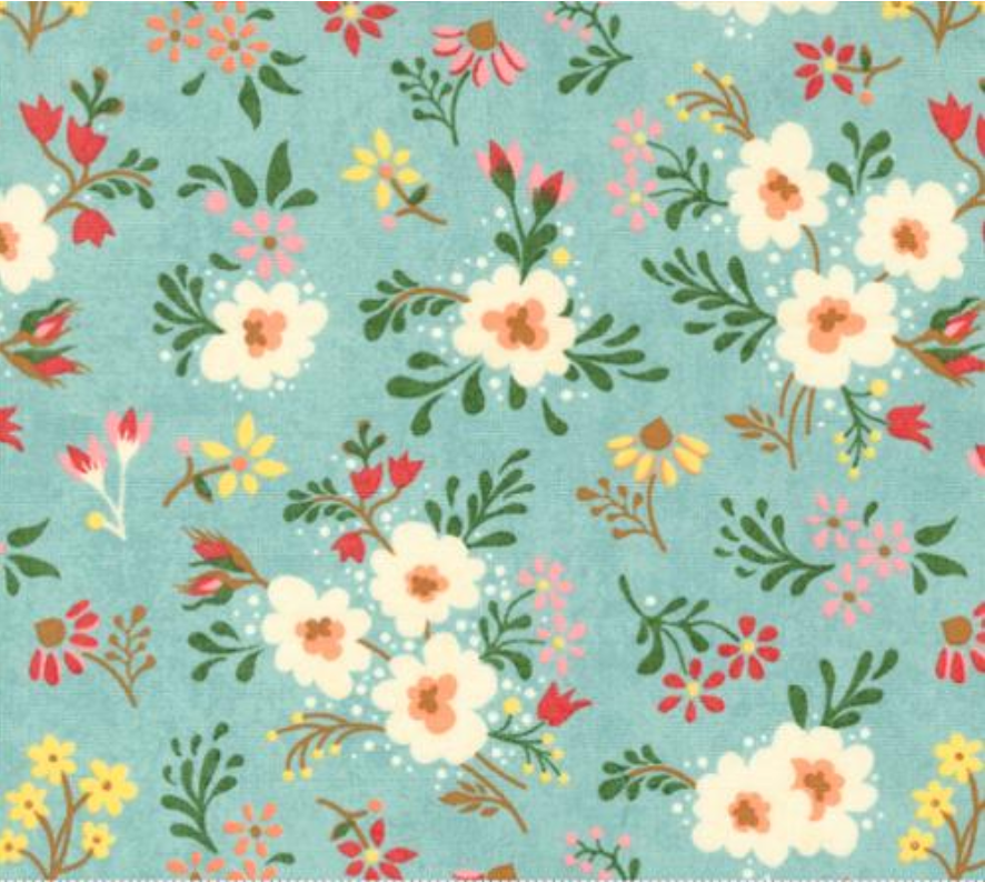 Print Description: In-season flowers on a aqua background.