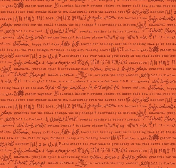 Collection Description: Happy Fall Days by Riley Blake Designs is all about celebrating the cozy charm of autumn! With adorable pumpkins, colorful leaves, and festive fall patterns in warm, rich tones, this collection is perfect for creating quilts, table runners, and seasonal projects that capture the magic of fall.