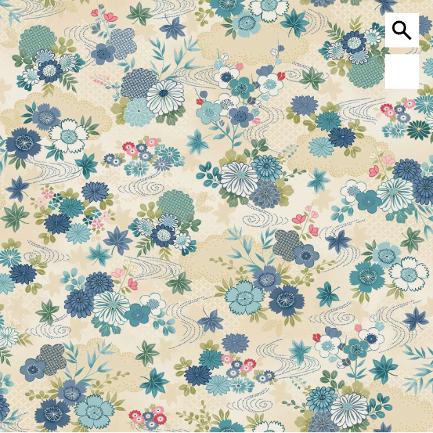 Collection Description: The "Kasumi" collection by Makower UK is a beautiful blend of elegance and serenity. Inspired by Japanese art, it features delicate florals, soft waves, and subtle geometric patterns in soothing shades of blue, pink, and gold.