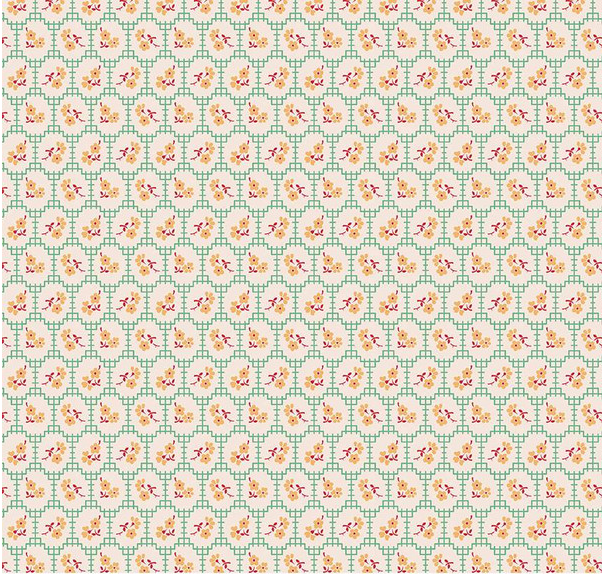 Print Description: This print features floral medallions on a grid background.