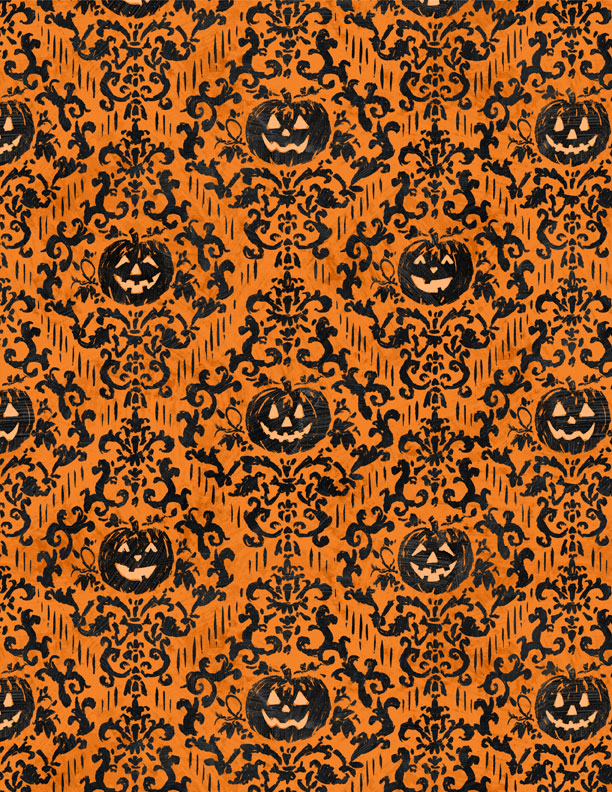 Midnight Hauntings Pumpkin Damask Orange Fabric
