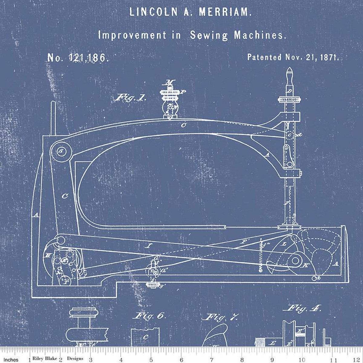 Print Description: This print features vintage sewing machine drawings on a textured purple background.