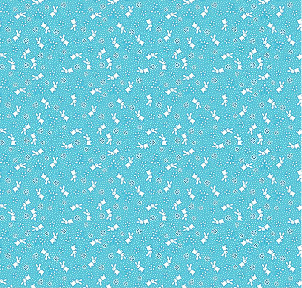 Print Description: This print features bunnies, blossoms, and pin dots.