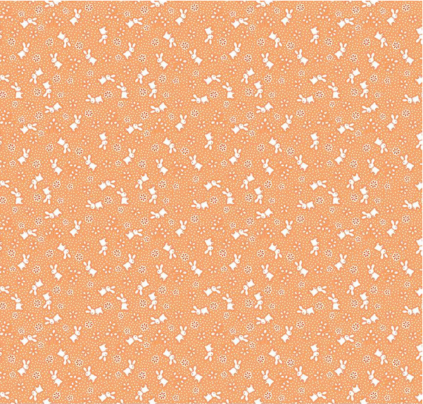 Print Description: This print features bunnies, blossoms, and pin dots.