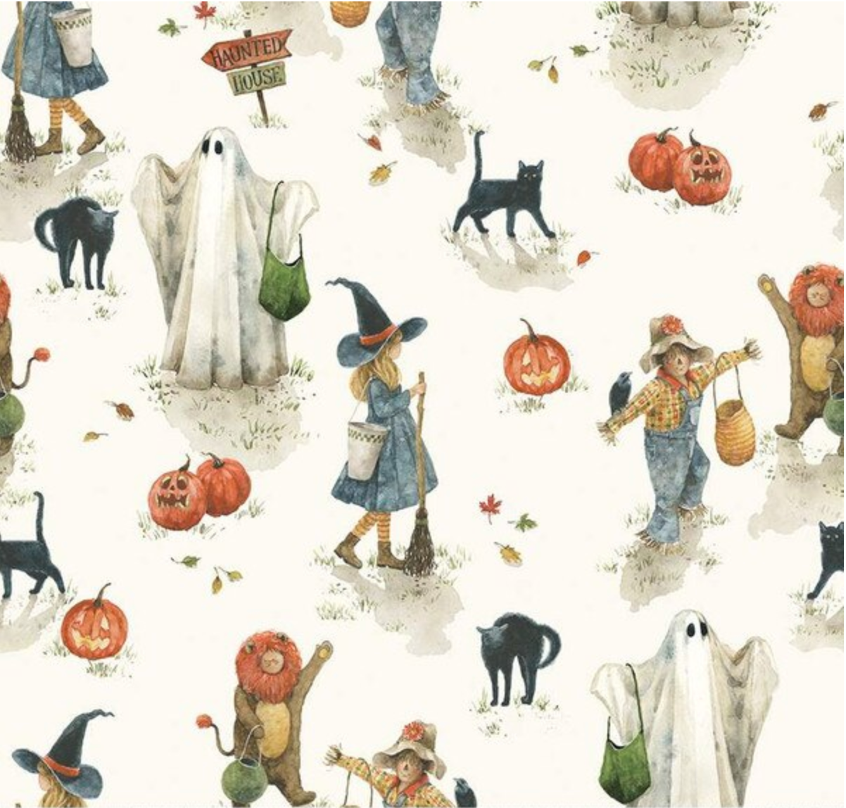 Collection Description: Trick or Treat by Riley Blake Designs is a playful celebration of Halloween fun! This collection is filled with whimsical ghosts, cheerful pumpkins, and spooky but cute designs, all in vibrant, festive colors.