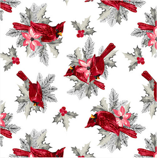 Holiday Style Cardinals White Yardage