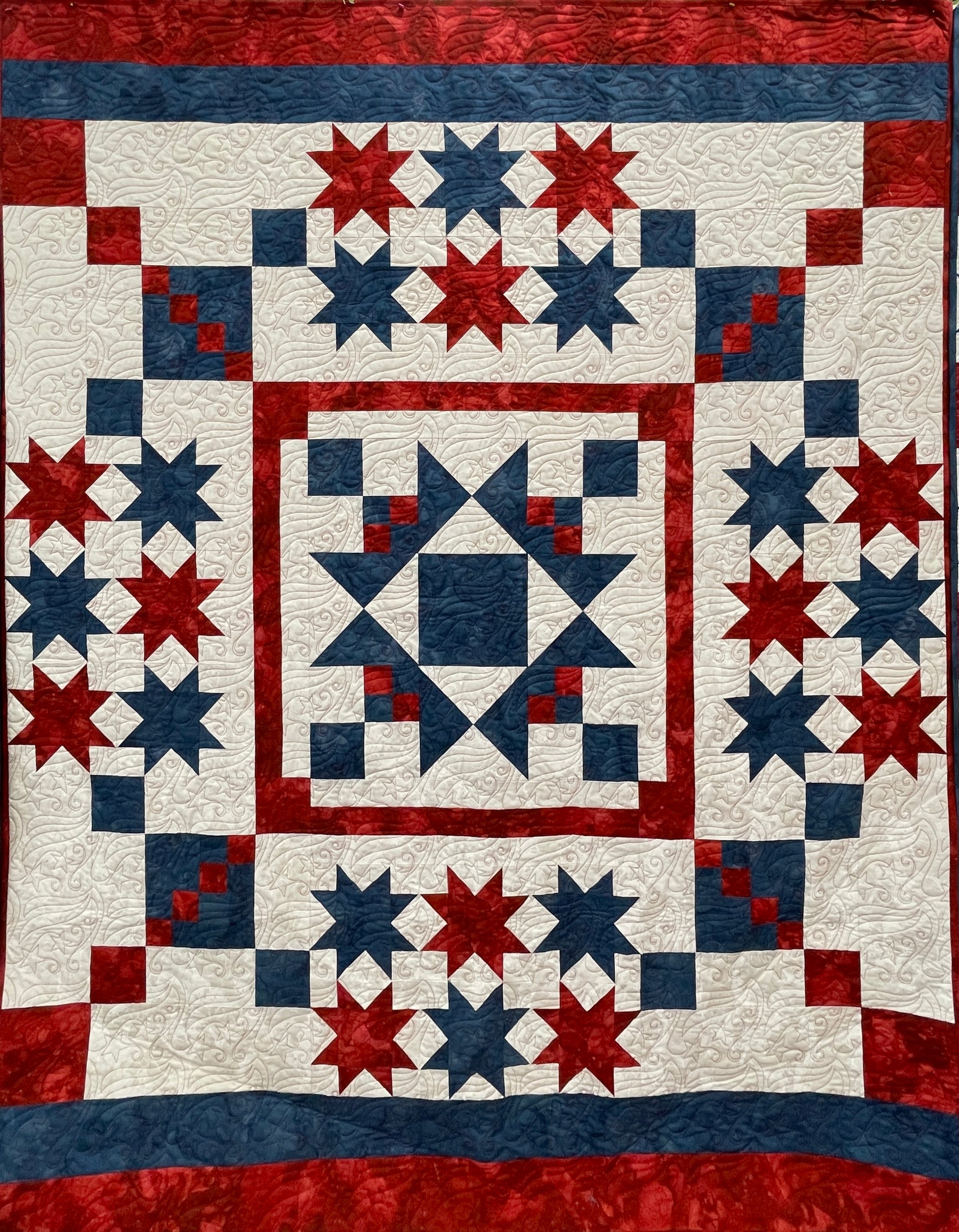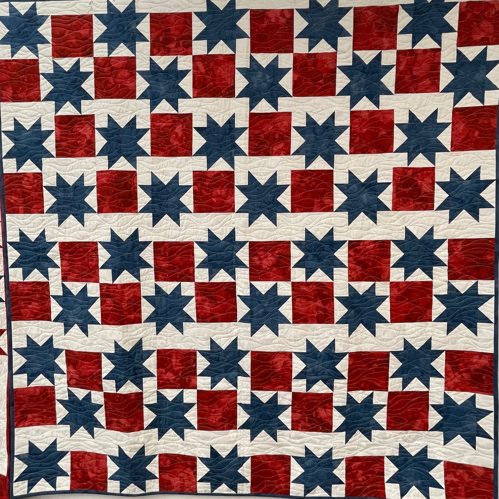 We have teamed up again with Northcott Fabrics to bring you this exclusive kit. However, this year the fabric features 3 colors of a new blender exclusively made for the Patriot Box.