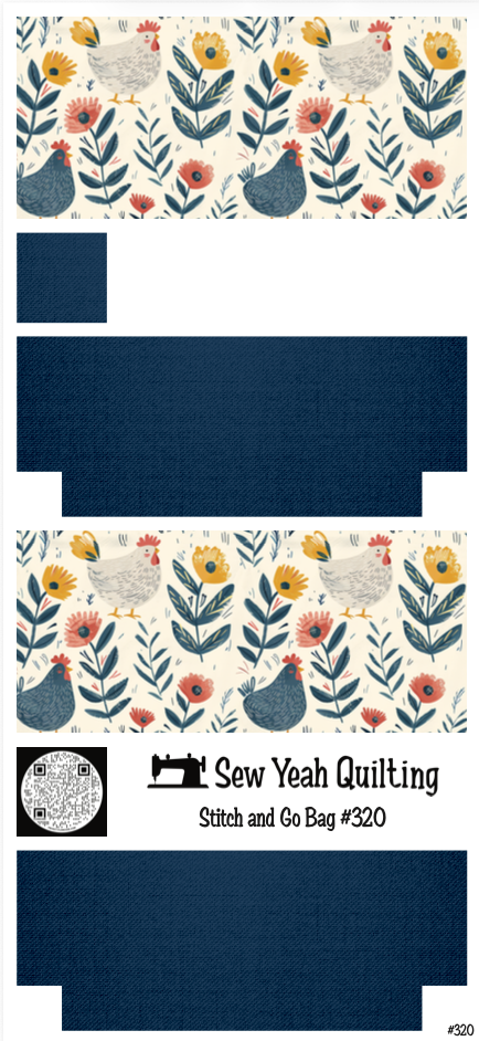 Stitch & Go Bag #320 - Chickens Folk Art Flowers on Blue