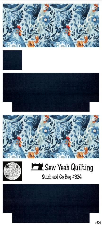 Stitch & Go Bag #324 - Chickens Folk Flowers all Blue on Blue