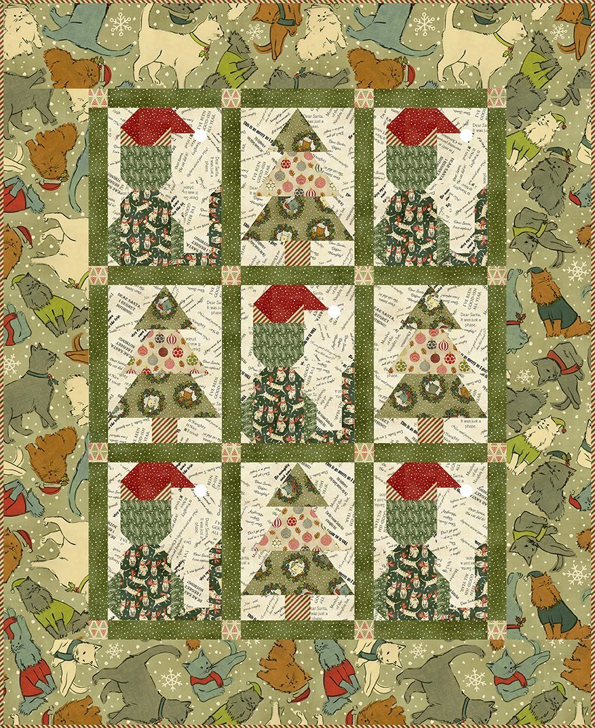 Description: This is a fun, whimsical, quilt with a vintage look for any cat lover. The fabric featured on the pattern is the Christmas Cats collection by Jason Yenter for In The Beginning Fabrics. This kit contains the pattern, and the fabric needed for the quilt front, borders, and binding. No backing fabric is included.