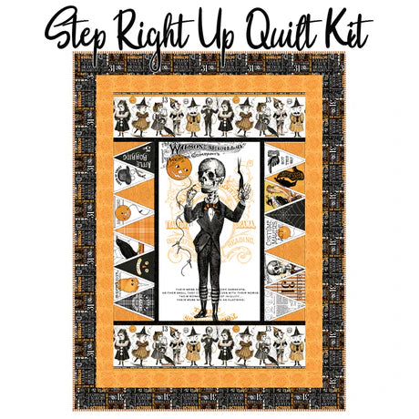 Costume Maker’s Act II draws its inspiration from a rare collection of antique sewing patterns dating back to the late 1800s. The Step Right Up quilt kit is a fantastic way to bring this nostalgic, spooky collection to life. Featuring the main panel and coordinating fabrics, this project adds a perfect eerie charm to your seasonal décor. Designed with piecing techniques, it’s ideal for confident beginners.