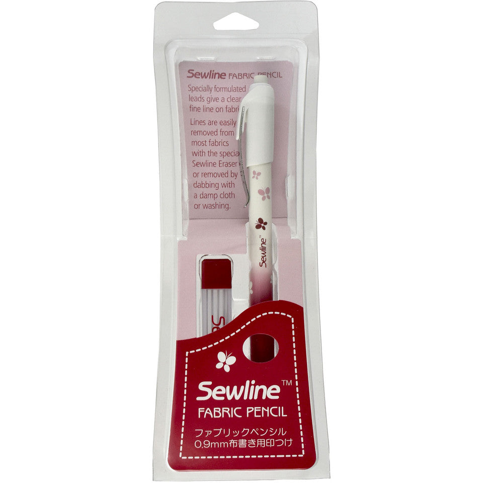 This innovative pencil features ceramic leads that create fine, clean lines on fabric—without leaving residue like tailor’s chalk or hard-to-remove marks. Easily erase lines with the Sewline Eraser or wipe away with a damp cloth. No sharpening and no messy wood shavings—simply click to advance the precise 0.9mm lead. Refillable with up to six leads, and includes six refill leads in the pack.