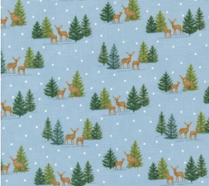 Woodland Winter Tiny Tree Deer Sky Blue Fabric