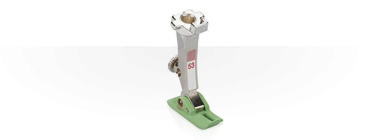 Straight Stitch Foot with Non-Stick Sole #53 therefore guarantees a meticulous, pucker-free job on both heavy and fine materials. What’s more, its toes of different widths are suitable for two different seam allowances. Owing to its design and special features, Straight Stitch Foot with Non-Stick Sole #53 is also superbly suited for topstitching.