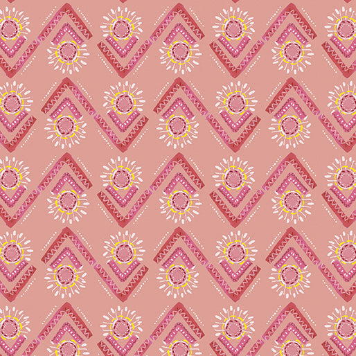 Print Description: Pink tone on tone shapes and sun