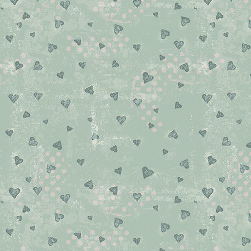 A Heart Led Life Tonal Hearts Turquoise Fabric