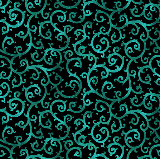 Print Description: This print features scrolling splendor in turquoise and black colors.