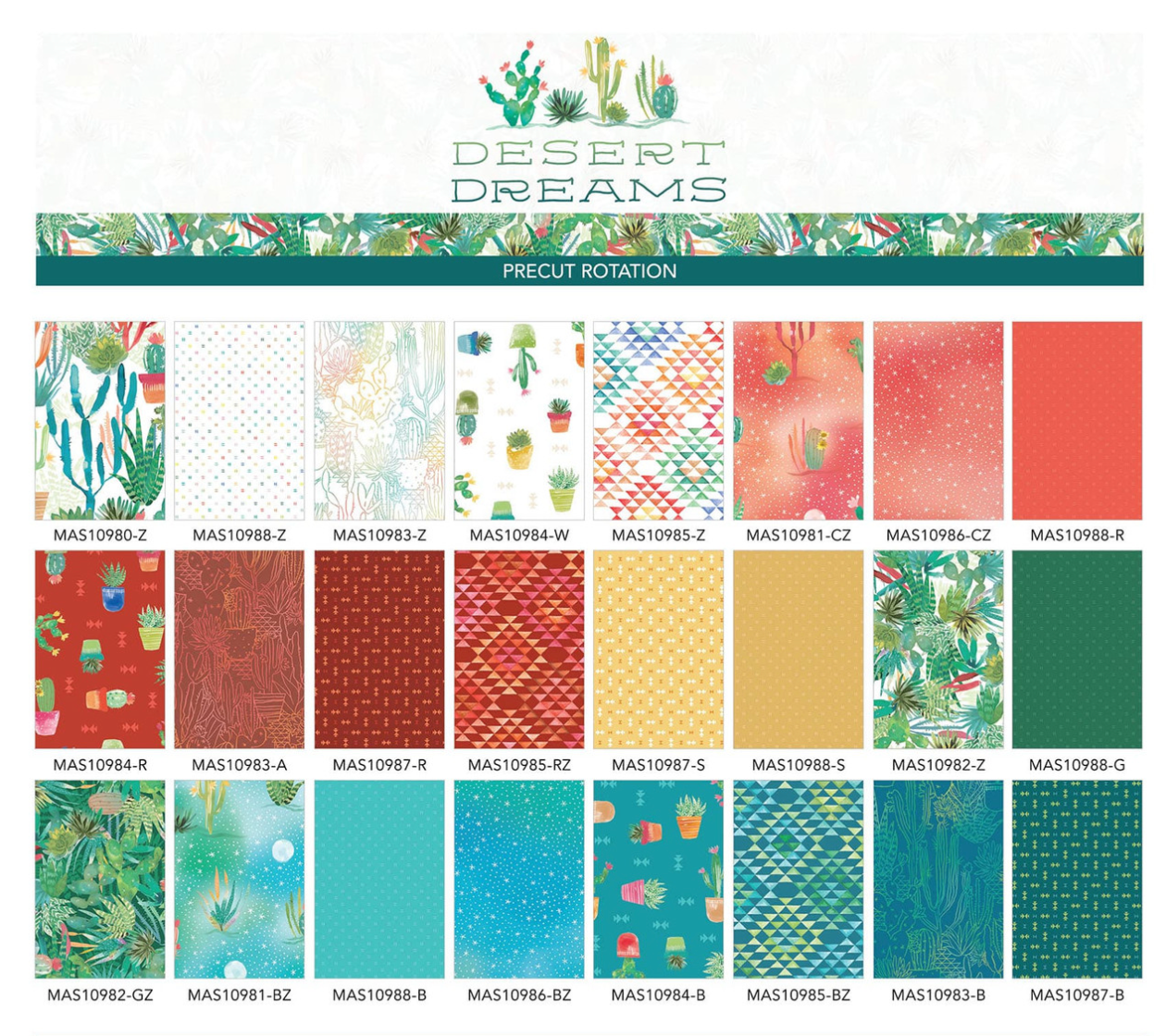 Drawing inspiration from the radiant, sunlit Southwest, Desert Dreams pairs gentle, sunset-like tones with striking geometric patterns that mirror the natural lines of desert scenery. Featuring a palette of terra cotta, golden yellow, turquoise, and seamless transitions from sky blue to sage green, it captures a feeling of warmth, depth, and serene beauty.